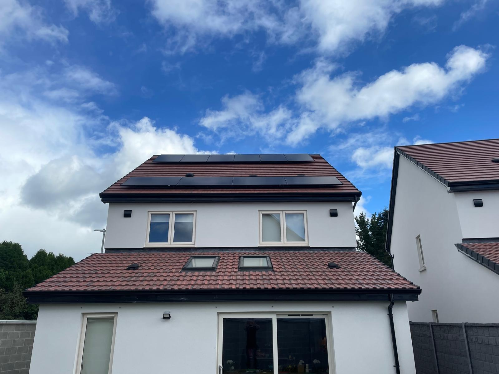 8.7kW Soalr PV System with 5.3kW Battery Storage. Panel layout at the back of the property in a mix of landscape and portrait to allow for the velux windows for an attic conversion in the future